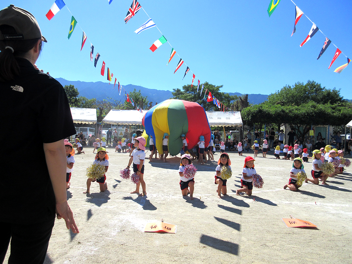 10月11日に大運動会を行いました。今年の運動会のテーマは「輪」。各クラスともそれぞれに一生懸命に練習に取り組み、クラスの輪、幼稚園の輪を作り上げてきま した。どのクラスも素晴らしい演技、競技を見せ、その成長ぶりには感動するばかりでした。この経験をぜひこれからの生活に役立ててもらいたいと願っています。