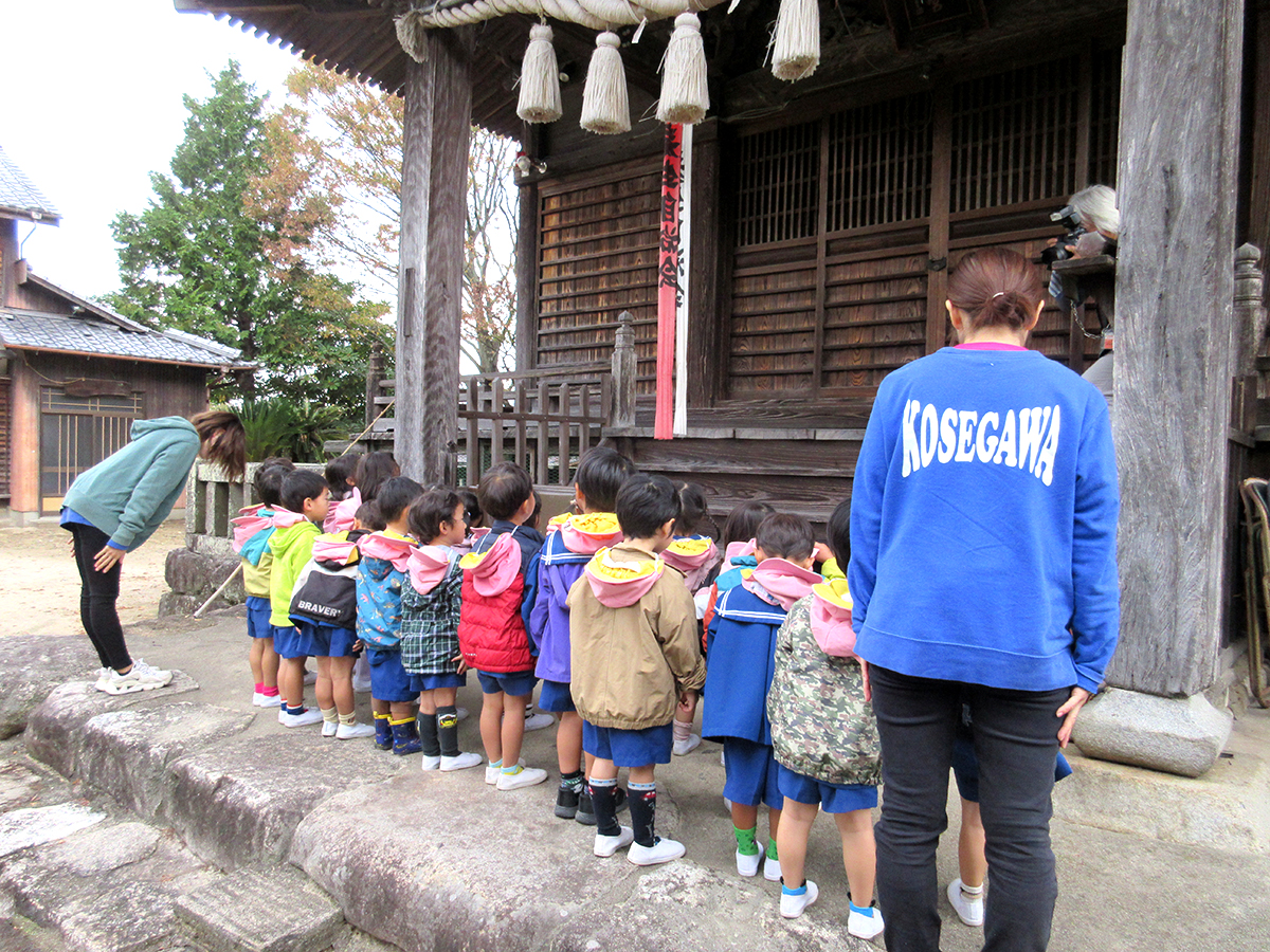 11月13日に七五三のお参りに行きました。各クラス自分たちで千歳飴の袋を作ってこの日を迎えました。今まで見守っていただいたことへの感謝と、これからもしっ かり頑張ることを約束してきました