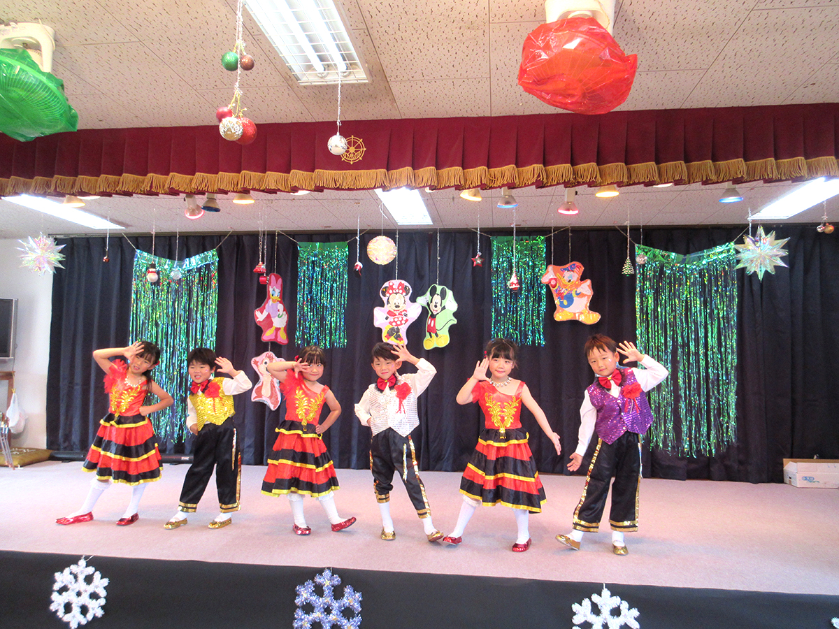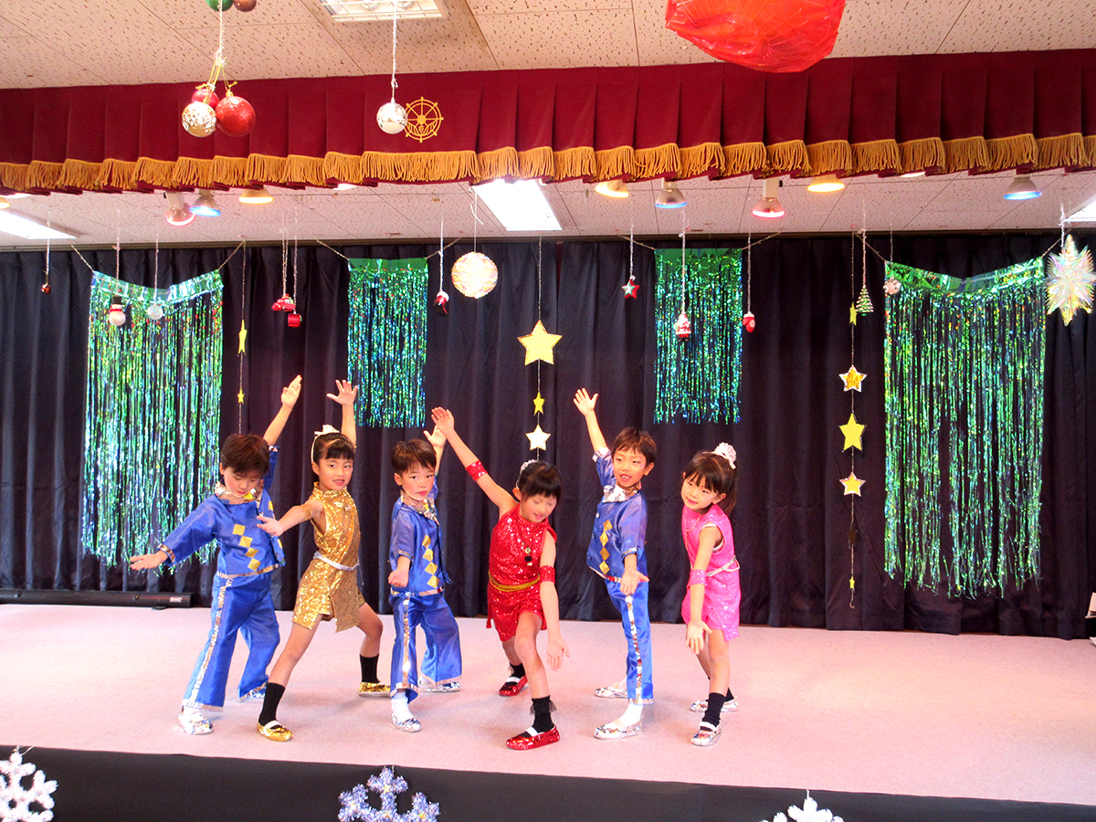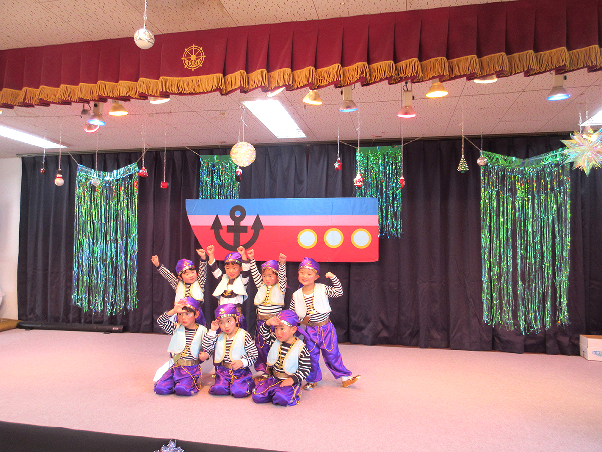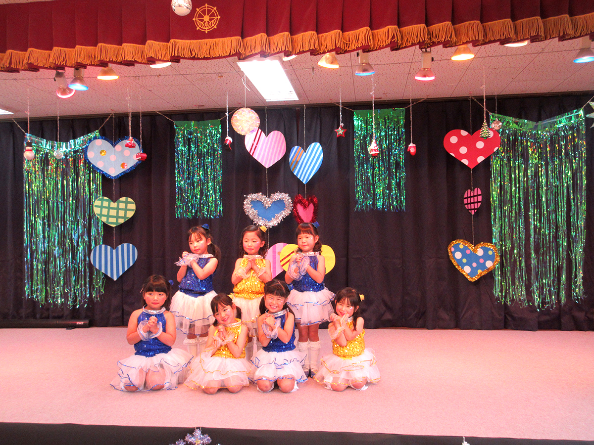 12月6日に第45回生活発表会を行いました。運動会前から少しずつ取り組み、みんなで力を合わせて頑張ってきました。 当日は素敵な衣装を着て、メイクもして、えがおいっぱいのはっぴょうをすることができました。