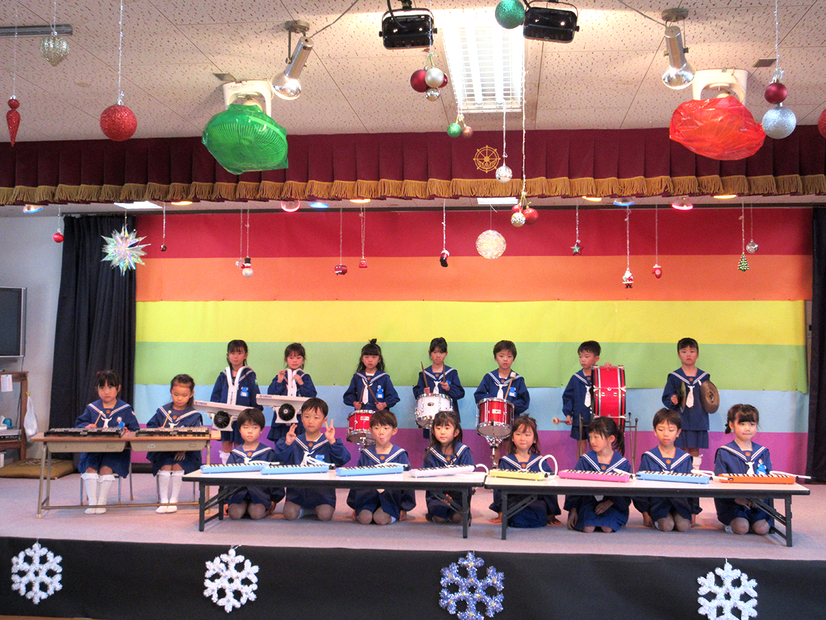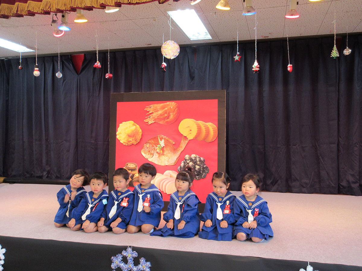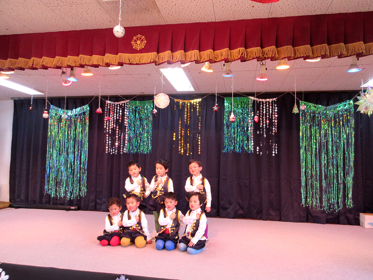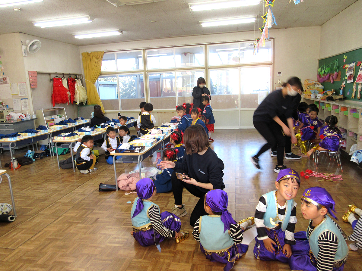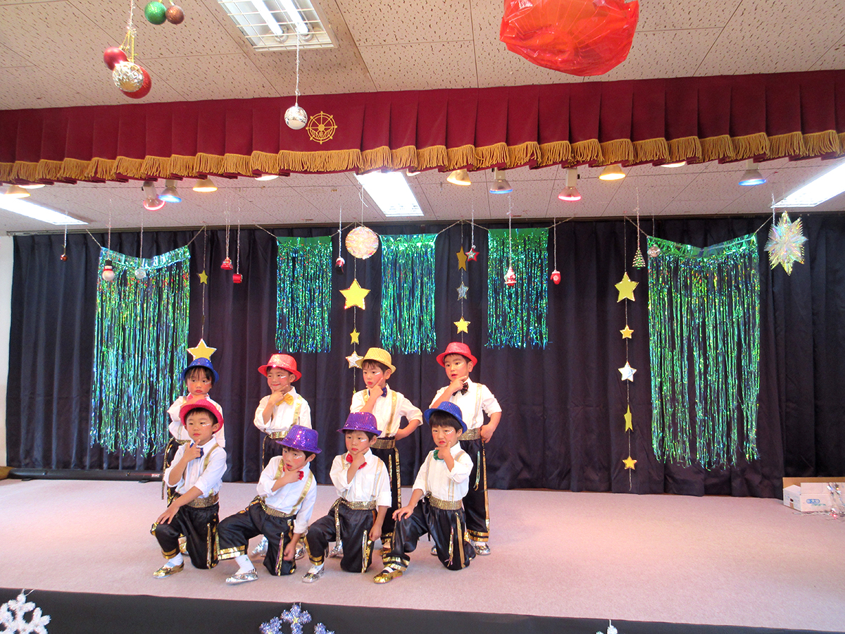 12月6日に第45回生活発表会を行いました。運動会前から少しずつ取り組み、みんなで力を合わせて頑張ってきました。 当日は素敵な衣装を着て、メイクもして、えがおいっぱいのはっぴょうをすることができました。