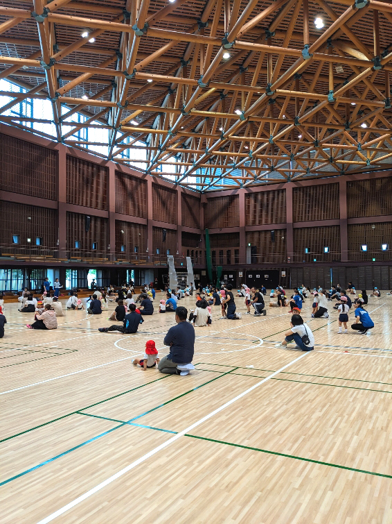 6月8日(土)に父母参観をうきはアリーナで行いました。 ひろーいアリーナでお家の方と思いっきり運動できて子どもたちははじけるような笑顔で楽しんでいました。